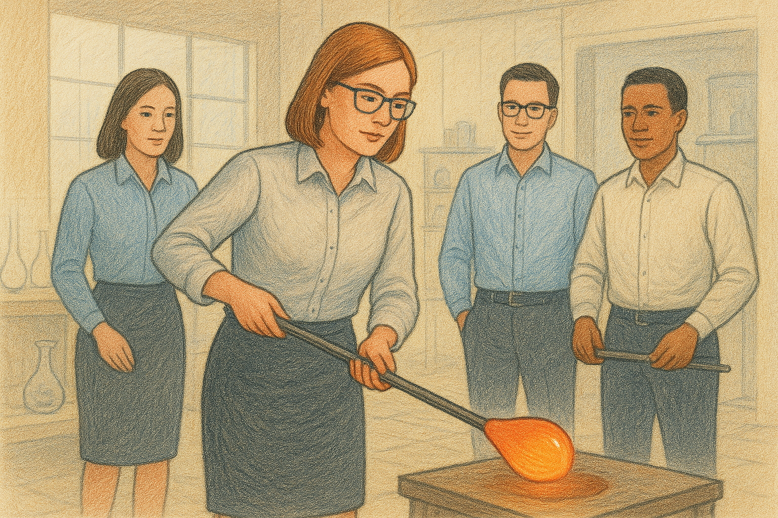 Looking for a unique and unforgettable group experience? Whether it’s a corporate team-building event, birthday celebration, or a fun outing with friends, we welcome groups of any size! Your group will be guided through the exciting process of working with molten glass—gathering from the furnace, adding color, shaping your piece with specialized tools, and watching it transform before your eyes. No prior experience is needed—just bring your creativity, and we’ll handle the rest! Give us a call at 682-302-1079 to book your event and craft lasting memories together.